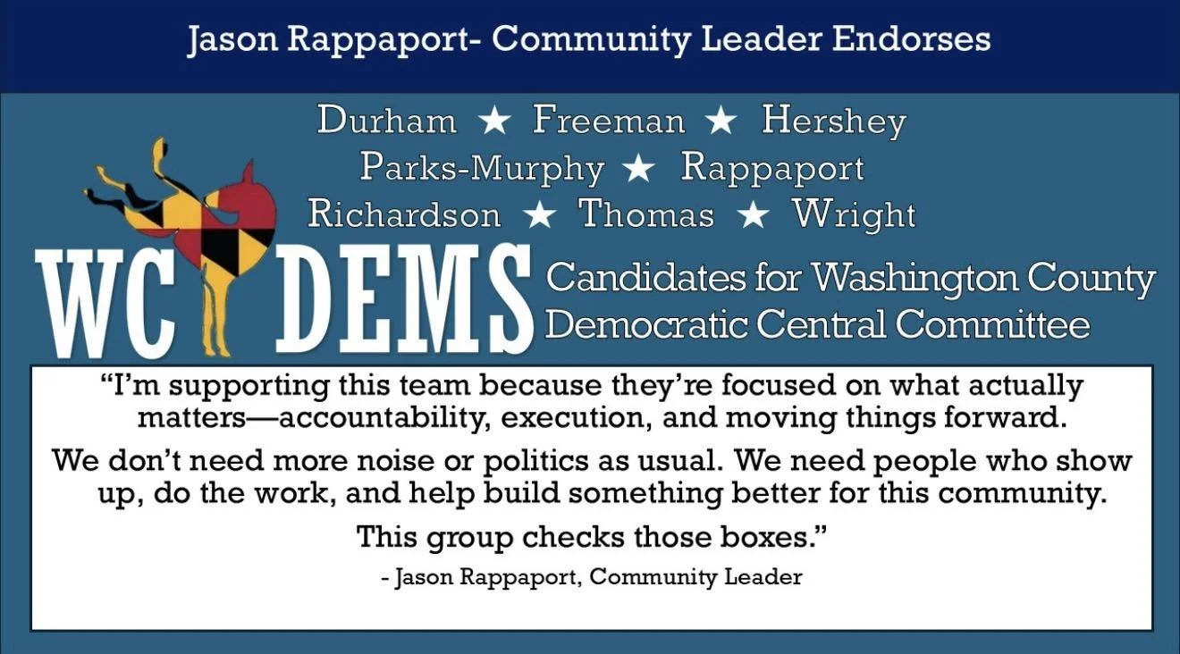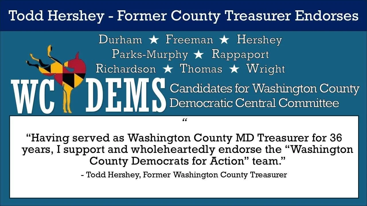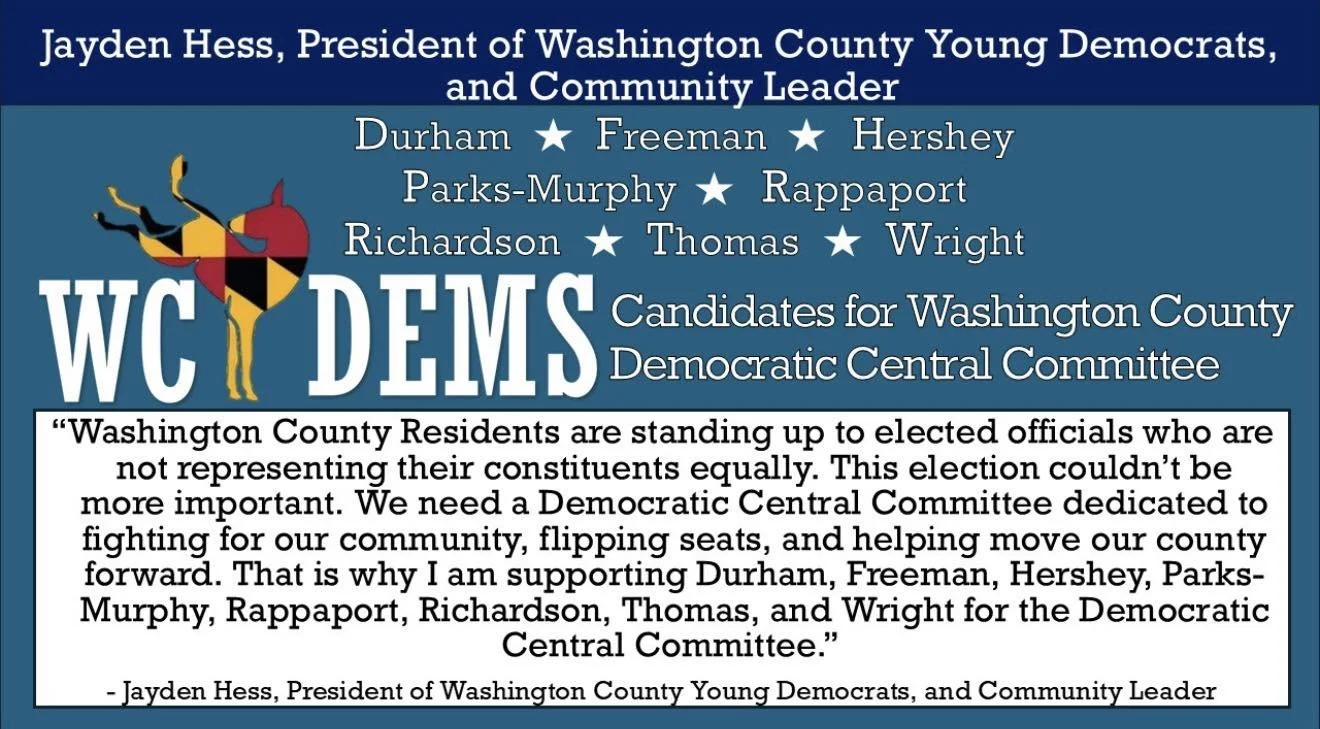 We are a diverse team of candidates running for the Washington County, Maryland, Democratic Central Committee. The team is running to help unite Washington County Democrats and bring about postive change in our community.